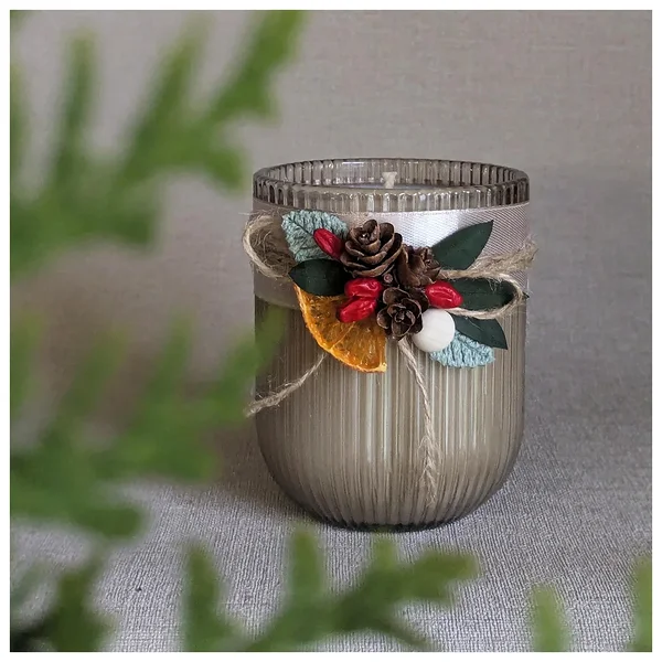 Klaasist anum pakub praktilist kasutust ka pärast küünla ära põlemist – seda võib hiljem kasutada kaunistuseks või väiksemate esemete hoidmiseks. Küünla kaunistamisel oleme kasutanud looduslikke vahendeid, nagu käbid, punased marjad, apelsin, eukalüpti lehed ning käbid.