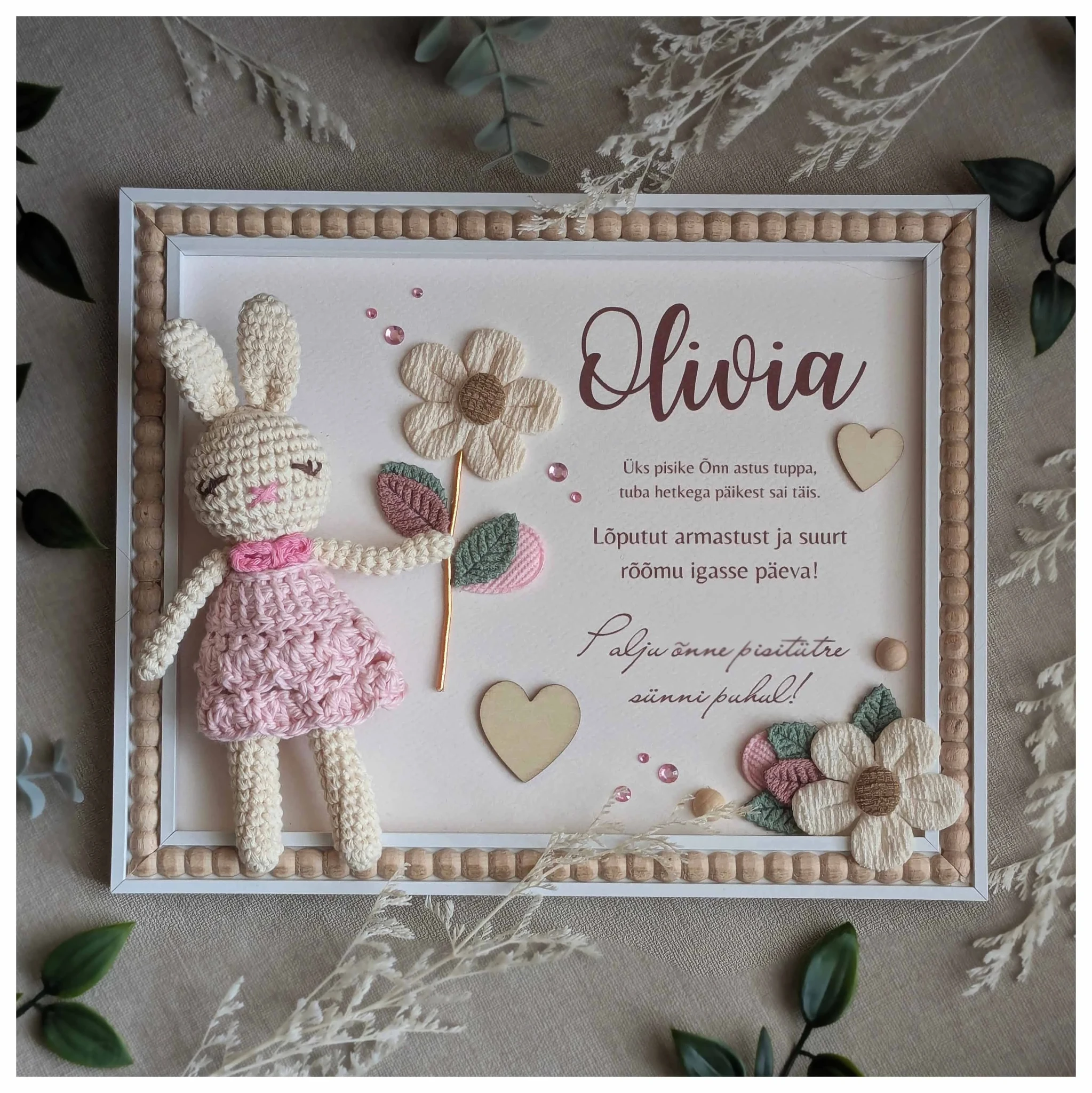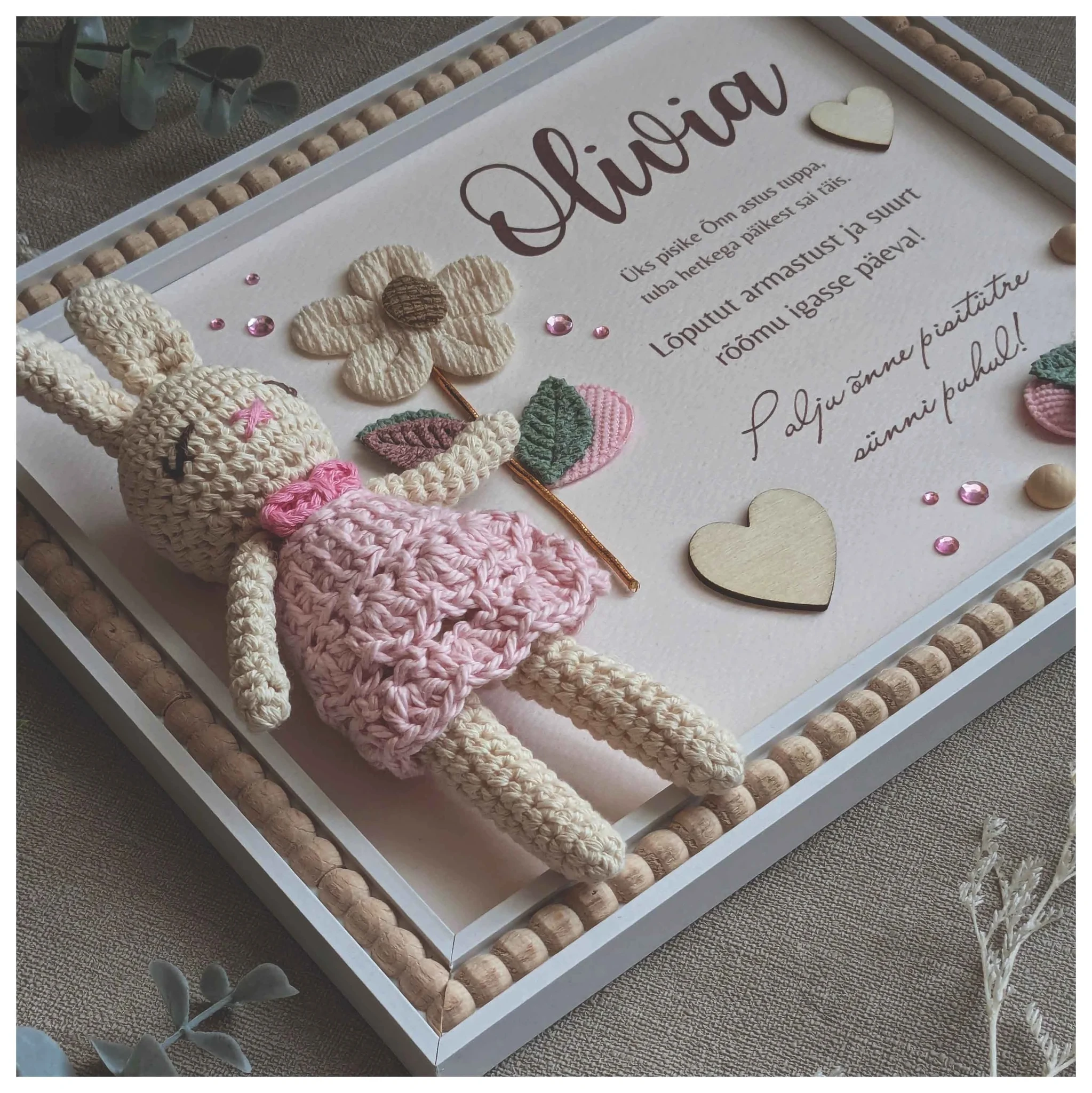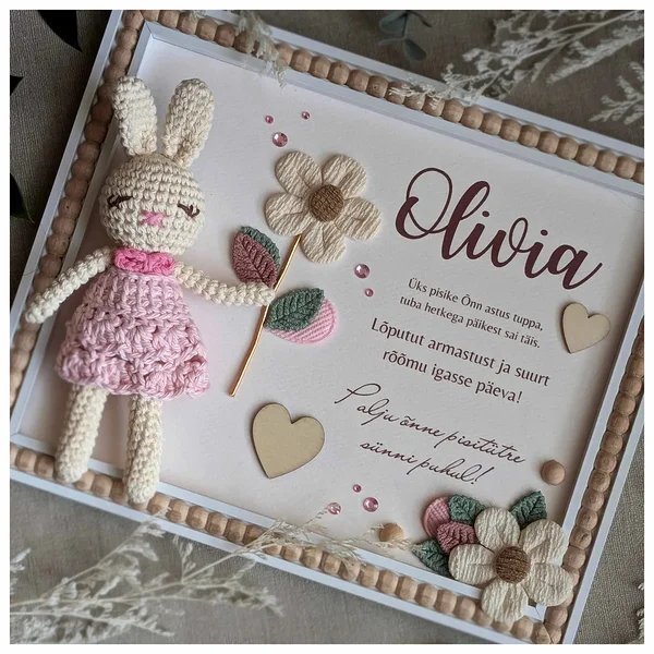 Raami sobib kinkida lapse sünni puhul, katsikule, esimeseks sünnipäevaks, 6 kuu vanuseks saamisel. Saame kohandada teksti ja muuta salmi.