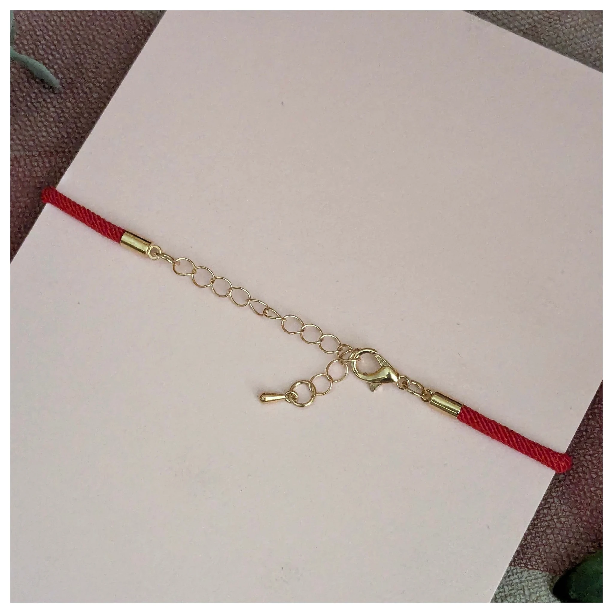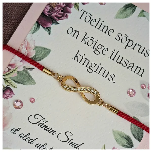 Käevõru igaviku sümboliga: punane reguleeritav käevõru, millel on kuldset tooni ja kivikestega igaviku sümbol.