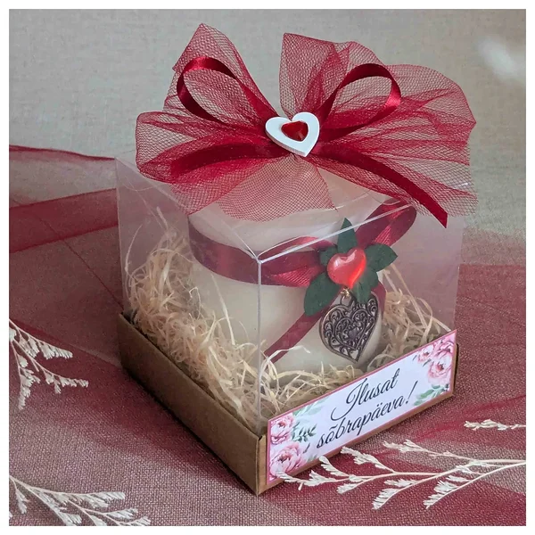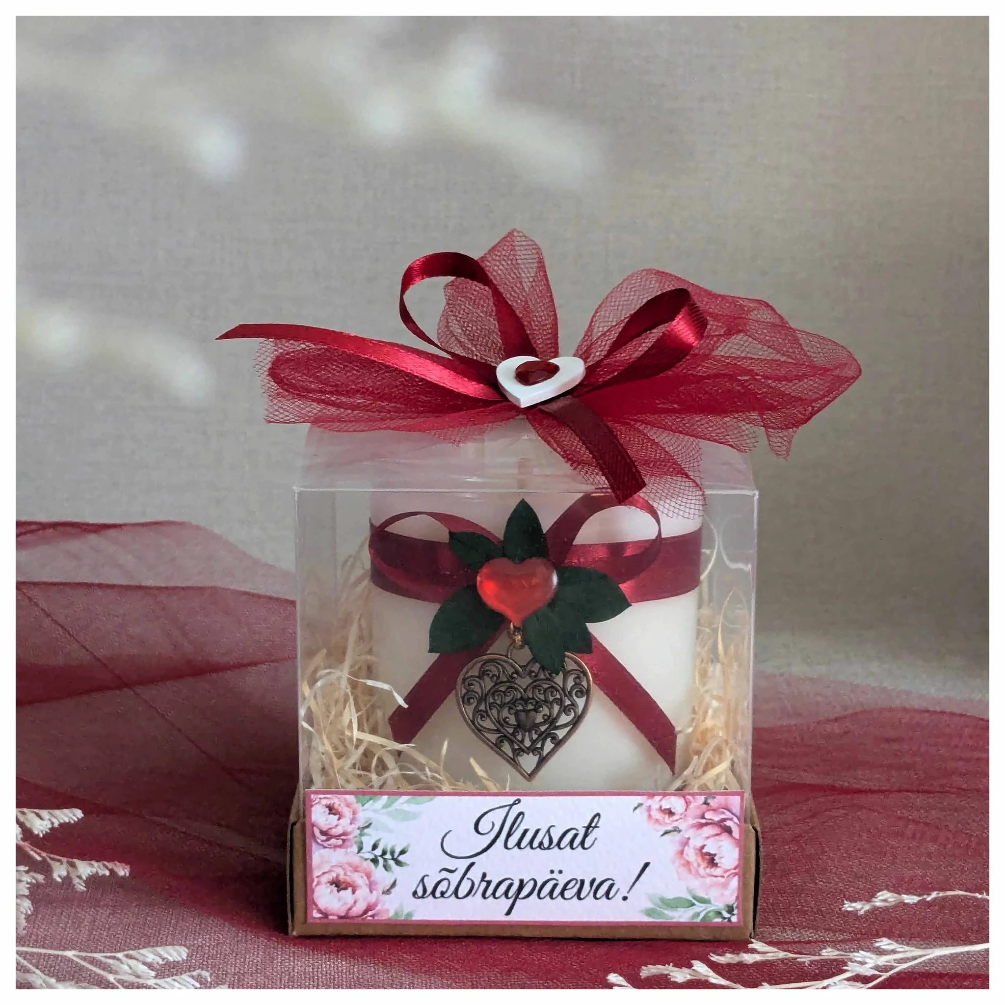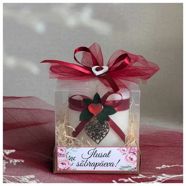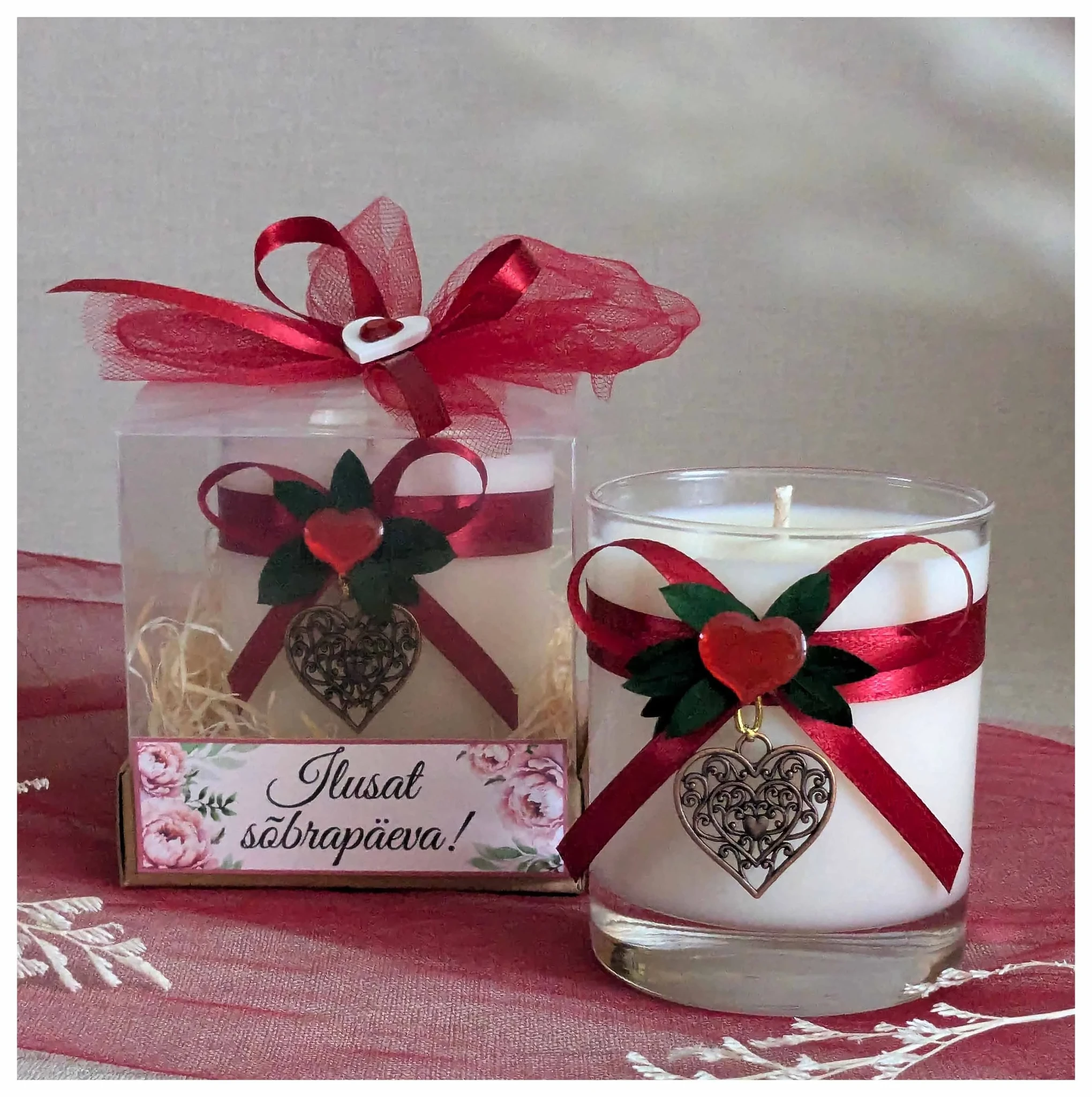 Küünalt kaunistab punane pael ning südamekujulised detailid, mis teeb sellest kauni ja tähendusliku kingituse kallile sõbrale, partnerile või lihtsalt heale inimesele.Sobib ideaalselt: